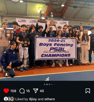 Managed boys’ and girls’ fencing teams across three seasons, coordinating tournaments, practices, and events. Boys’ team won 1st Place in City Championships (Fall 2024).
